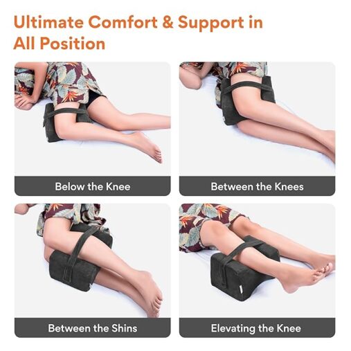 Knee Pillow for Side Sleepers, Knock Knee Corrector for Sleeping, Memory Foam Leg Pillow Wedge Cushion for Side Sleeper, Sciatica, Pregnancy, Hip & Back Pain Relief – Washable Cover (Dark Grey)