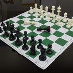 18.2'' x 18.2'' Tournament Chess Vinyl Foldable Chess Game with Solid Plastic Pieces (with Two Extra Queens + Vinly Pouch) - for Professional Chess Players -