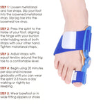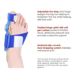 Bunion Pain relief A toe strap which helps realign the big toe with the foot An adjustable strap which stabilizes the metatarsal arch Daily and Nightly use How easy and comfortable it is to walk in them