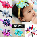 Chiffon Satin Lace Ribbon Boutique, Elastic Bow knot Head Band for Girls, Pack of 10 - Multicolour