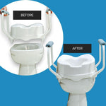 "Commode Raiser 6 Inch with Comfort and Stability 6-Inch Commode Raiser with Handle and Secure 4-Clip Attachments"