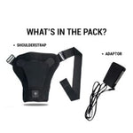 SAFE TO USE: Shoulder strap is uniquely designed with a step- down adaptor that converts 120- 300V AC to 12V DC. This makes it much safer to use than a traditional electric heating pad that uses 220V power.