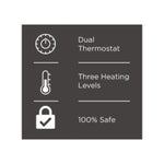 Three different heat settings, controlled by a convenient slide switch to produce heat therapy at just the right temperature for your ailment.