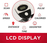 - LCD Display- Scan, Time, Speed, Distance, Odometer, Calories And Pulse. Powered By: Magnetic. Handle: Hdr Foam Grip. Resistance Levels : 2