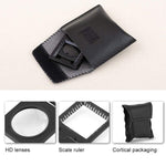 - With In-built precision scale and measurement in inch and mm units. 3 Round folding for easy pocket storage. Comes with a pouch to protect your magnifier.