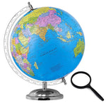 Globe for Kids, STEM STEAM Educational World Globe Metal Base with Magnifying Glass for Kids/Political Globe/Office Globe/Globes for Students - 10 INCH (Blue)