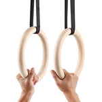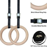 Gymnastic Wooden Rings with Heavy Duty Adjustable Strap | Roman Rings Perfect for Calisthenics Competition and Conditioning Training