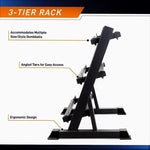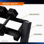 Store your dumbbells in a designated space that you can easily access while keeping things organized in your home gym.It also absorbs shock during re-stocking, preventing the rack from sliding. this free weight organizer features rubberized feet that protect your floor from scratches. Made from commercial-grade steel, its durable frame can withstand heavy loads while resisting damage from intensive use over time.This weight rack has an ergonomically designed structure featuring a compact three-tier storage space and an angled design, allowing you to place the rack in any part of your gym for easy equipment accessibility.