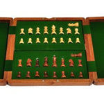 The interior of the storage compartment is lined with rich green velvet which cushions the chessmen for easy and safe transport