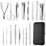 Manicure Pedicure Set Nail Clippers Kit of 16Pcs, Stainless Steel Professional Grooming Kit, Facial & Hand & Foot Beauty Set, Nail Cutter Tools with Luxurious Travel Case