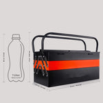 Powder Coated Metal Tool Box Empty With 5-Tray Cantilever Tool Organizer Without Tools, 18"", Dual Handle, Metal Frame, Rust Resistant, Triple Colour Toolbox. The toolbox comes with proper inside rivets ot to damage or cut the fingers of the users while keeping or taking out the tool. Made from heavy duty carbon steel with a corrosion resistant powder coat finish which delivers strong and solid construction for added durability.