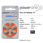 Size 13 Hearing Aid Batteries Zinc Air P13 Pack of 60