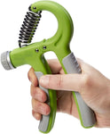 Hand-grip strengthener (2-pack, Green) for working the muscles in the fingers, hand, wrist, and forearm Ideal for enhanced sports performance, injury prevention or recovery, and stress reduction Made of PP and ABS plastic with a durable spring and a comfortable non-slip rubber grip Level of resistance can be easily adjusted; designed for women and men of all skill levels Measures 6.1 by 4.3 by 0.8 inches (LxWxH); weighs 136 gms