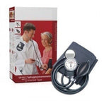 Aneroid Blood Pressure Monitor With Stethoscope, (Black) Chrome-plate brass air release valve Ultra soft washable cotton cover Latex free cuff 4 layers of insulation on either side for complete comfort and safety White enamel 300 mmHg no-pin stop manometer