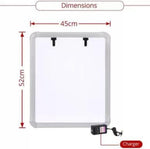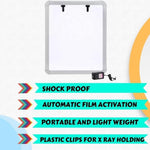 LED X-Ray View Box with Automatic Film Activation & Variable Brightness Control Power: 12 V, 50-60Hz. Bulb: High Glossy Led Bulbs. With Dimmer to adjust brightness of Screen Parts: Heavy Duty Switch & Socket Used. Safety: Shock Proof Mechanism Holding: Plastic Clips for X-ray film Holding. Handling: Light Weight & Portable Approx. Viewing Area : 43 x 35.5cm. Approx. External Dimension : 57 x 43 x 7cm Body: Powder Coated MS Cabinet with Frame. Sheet: Acrylic Sheet Product Dimension : 57 x 46 x 8 Item Weight : 3 kg 200 g