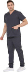 Spancare Mens Scrub Suit - Ideal for Doctors, Dentists and Healthcare Professionals.(CLASSIC) Pyjamas included. Pyjamas with back elastic as well as drawstrings, 2 side pockets for essentials in pyjama.V neck with 2 down pockets in top , wash dark colors separately.Material - Polycotton Material.