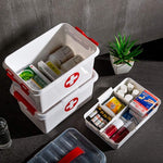 SPANCARE PHARMACEUTICALS Portable Double Layers Cabinet First Aid Kit Box Household Plastic Pill Storage Box with Detachable Tray and Handle