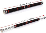 Pull up Bar, Chin up Bar Door Way Door Mounts for Home, Gym, Fitness, Exercise ✅ ADJUSTABLE LENGTH: 65 cm (25.5 inches) to 85 cm (33.5 inches). NOTE: Kindly check you door frame width before Installation. ✅ MAXIMUM LOAD CAPACITY: 80 kg ✅ SCREWS ARE REQUIRED & ARE INCULDED IN THE BOX. Install on Solid wood door, steel door, brick wall, marble wall. Don't Install it in Glass walls, Cermiac walls, Metal frame walls. ✅ MATERIAL: Made of Steel & Extra-Long Foam Grips for Extra Comfort. ✅ CONTENTS: 1 Pull up Bar, 8 Screws, 1 Pair Plastic Knob, 1 Pair Metal Cap, 1 Pair Anti-skid Rubber.