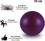 PVC Gym Ball, Size 55 CM, (Purple) Skill Level: Professional Special Feature: Anti-slip. Specific Uses for Product: Great For Pilates, Yoga, Back, Abdominal Training, Pregnancy Gymnastics Or The Hundreds Of Low Impact. Included Components: Gym Ball With Foot Pump, Size Name: 55 cm, Color Map: Purple Material Type: PVC Item Weight : 780 gr Product Dimension : 45 x 45 x 45 Centimeters