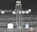 Two dram 10ml glass bottle transparent quality neutral glass vial (144 bottles per box) Homoeopathy bottles (10ml / Two Dram) Made from neutral glass type 1 Borosilicate clear transparent sample storage glass vials. Bottles are very shiny, Crystal Clear and Transparent Glass bottles. Eachbox contains 144 glass bottles and white screw cap has label on top for marking the bottles and dropper plug. Application - Storing sample storage, Medicine, Reagent, Chemical, Liquid storage vial, Homoeopathy sugar globules storage, small bottles and perfumes storage. Annealed vials withstand very high temperature.