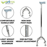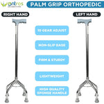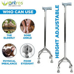 Steel Height Adjustable quadripod 4 Leg Walking Stick | Ideal for Senior Citizen, Old Elderly People, Patients & Handicap