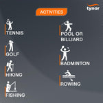 - Tynor tennis elbow specially designed for sports people playing racket sports, lifting weights or any activity that puts stress on the forearm . The Black color is universally accepted by any user and on either of the user hand.