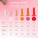 Material: BPA-free, medical-grade silicone Sizes Included (Diameter): 1.2 cm, 1.5 cm, 2.05 cm, 2.55 cm, 3.13 cm Length (Each): 6.25 inches Use: Supports pelvic health, recovery, and gradual training Design: Soft, flexible, and comfortable for manual use