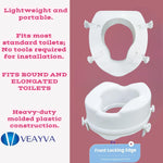 - Comm2. Durable Construction: Made of heavy-duty plastic 🛡️, the Veayva raised toilet seat has been tested and certified to be sturdy, durable and long-lasting. It is designed to withstand constant use, unlike other raised toilet seats that tend to wear and tear quickly.de raiser is Perfect For Home Surgical Recovery After A Hip Replacement Or Knee Surgery. Portable, Fits Round, Elongated And Compact Elongated Toilets.