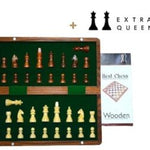 Wooden Handcrafted Folding Magnetic Chess Board with Extra Queens for Kid, Adult (18 x18 Inches)